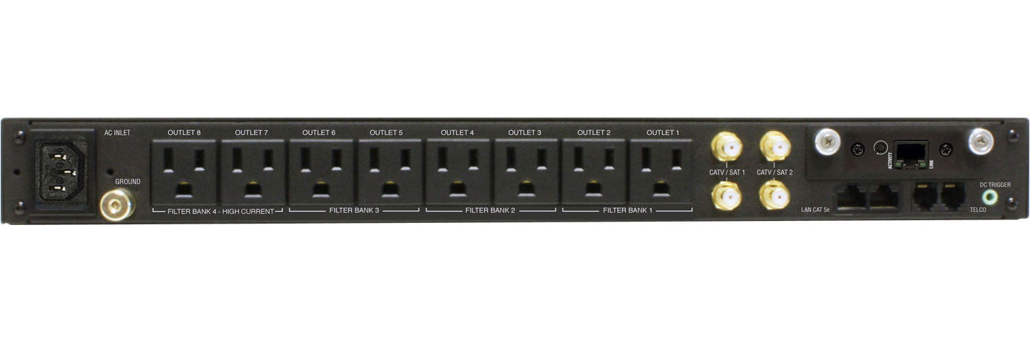 presenta el revolucionario circuito AVM (monitoreo automático de voltaje) de Panamax y nuestra exclusiva tecnología de filtrado lineal (LiFT). Juntas, estas tecnologías comprenden precisamente lo que nuestros clientes esperan de Panamax: protección y purificación de CA sin concesiones. Salidas: las ocho (8) salidas del panel trasero se controlan por separado. Están agrupados en cuatro (4) bancos con filtro aislado. Se incluye BlueBOLT ™, que proporciona control y supervisión del sistema IP alojado y seguro para el M4315-PRO.