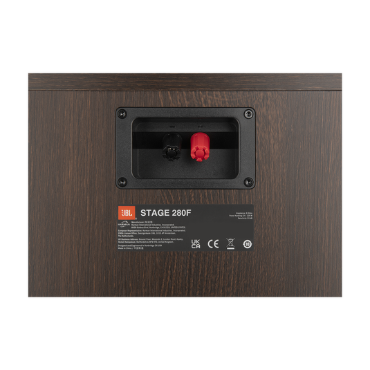 La 280F es de esas torres que “agradecen” buena amplificación: un ampli/receiver estable en 6 ohms las hace sonar más controladas y con mejor escena. Y si después quieres Atmos, la integración con JBL Stage 240H queda limpia gracias a los bornes dedicados.