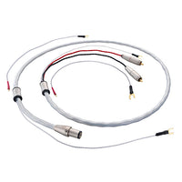 El V2 Tonearm Cable + utiliza cuatro conductores de OFC de núcleo sólido al 99,999999% plateados dispuestos en un diseño de par trenzado para crear un canal izquierdo y derecho, que se envuelven individualmente en un blindaje trenzado plateado, eliminando la intercomunicación entre canales. . Para aumentar drásticamente la velocidad de la señal y expandir las capacidades de ancho de banda del cable, estos conductores implementan la tecnología patentada de doble filamento mono de Nordost, reduciendo el contacto del aislamiento en un 85%. La construcción también incluye un cable de enlace plateado, blindado por separado, envuelto en Micro Mono-Filamento, que corre junto al canal izquierdo y derecho.