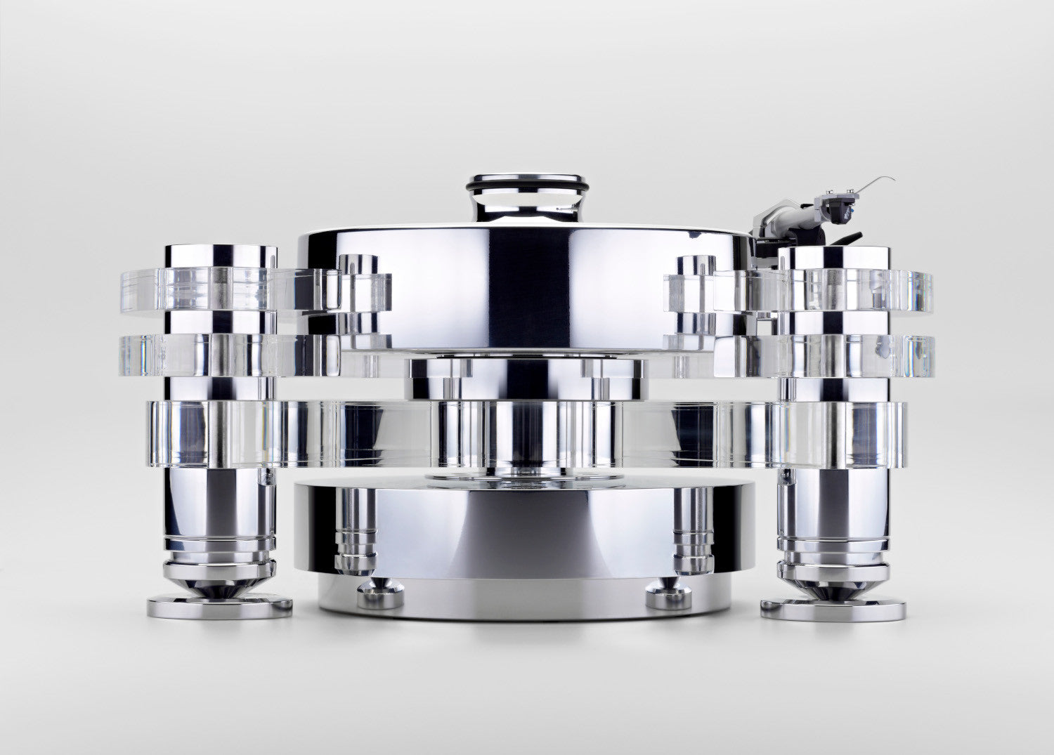 ORION CON FONOCAPTOR Tornamesa ORION REFERENCE FMD, chassis de acrílico y aluminio pulido, con cojinete magnético FMD (Free Magnet Drive), con record clamp, brazo TRA9, fonocaptor MC Figaro, fuente de poder Konstant FMD, disponible en acrílico translúcido.