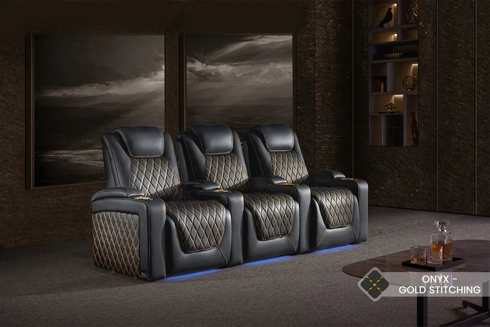 Valencia Theatre Seating ha rediseñado el asiento del cine en casa Oslo para brindarte la mejor experiencia para ver películas. Hemos agregado altura al respaldo del asiento para brindarle a su cuello y hombros una felicidad ergonómica inquebrantable. Con la opción de costuras en forma de diamante francés dorado o plateado, el cuero perforado eleva estéticamente su espacio y emula el rico atractivo de un automóvil de lujo.