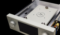 El PDT 3100 HV es un mecanismo CD/SACD purista que no incluye fuentes digitales ni convertidores adicionales integrados. Ha sido desarrollado única y exclusivamente para la tarea sin concesiones de leer SACD y CD, y está equipado con un nuevo mecanismo decodificador/accionamiento que hemos desarrollado desde cero. Este mecanismo lee y decodifica CD y SACD sin errores y con los más altos estándares de calidad. El mecanismo está integrado en una pesada unidad motriz fabricada con estrictos estándares, diseñada para protegerlo y aislarlo por completo. El sistema mecánico es extremadamente refinado.